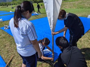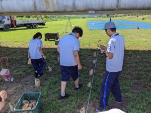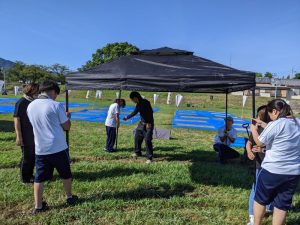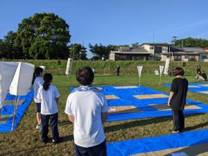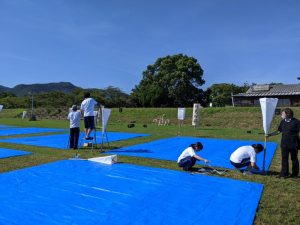 9月6日(土)三豊市豊中町財田川リバーサイドパーク(いなり運動公園)にて開催された、「第2回 もとやま月見の宴」にボランティアとして参加しました。厳しい暑さの中での作業となりましたが、主催者の皆さまに教えていただきながら会場準備を行いました。