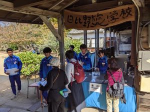 会場の準備や後片付けのお手伝いをしながら、本部スタッフとしてパンフレットの配布や誘導を行いました。朝からあいにくの雨でしたが、地域の方々に協力していただきながら活動することができました。
