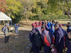 11月10日(日)詫間町志々島の大楠清掃ボランティアに参加しました。 本校から、野球部(3年)、陸上部(1年)、教職員、計36人が参加しました。また、まちづくり推進隊詫間、詫間町公民館、須田ボランティア、志々島の島民の方28人と一緒に、総勢64名での活動となりました。
