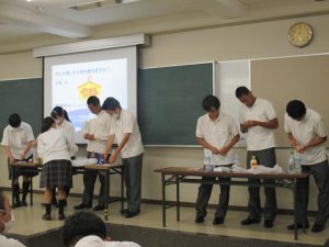 3年生出張授業 7月12日(水)、3年生を対象に出張授業が行われました。四国学院大学から近藤剛先生を講師にお迎えし、「水分補給」について講義をしていただきました。1.体と水分の関係、2.日常生活での水分補給、3.スポーツと体の水分量との関係をユーモアを交えて教えていただきました。また、清涼飲料水に含まれる砂糖について、実際に砂糖を水に溶かして飲んでみるなどの体験を行いました。
