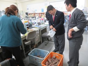 収穫したサツマイモを、職員室内で販売しました。残りのサツマイモは、焼き芋にする予定です。