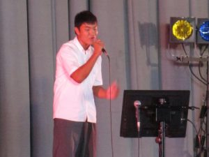 午前の部ではアドベンチャーランナーの北田雄夫さんを講師にお迎えし、「世界7大陸を走って学んだ諦めない心」の演題のもと講演会が行われました。その他、チアリーダー部によるダンスパフォーマンスやのど自慢が行われました。