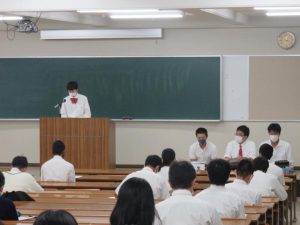 前期と後期の各委員会の委員長、各部活動から代表者が1名参加し、前期活動の良かった点・反省点について発表しました。