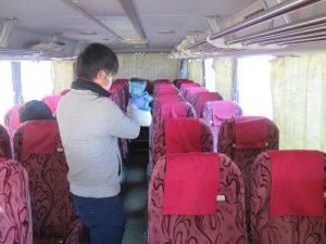 寮内、校内に引き続き、2月16日(火)に本校のスクールバス9台の車内にも光触媒コーティングを施しました。