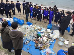 これらのプラスチックごみは、海で削られマイクロプラスチックになり、それを食べた多くの海洋生物が命を落としています。今現在、海中に50兆個のマイクロプラスチックがあると言われています。30年後には、海がゴミでいっぱいになり、私たちの生活に様々な影響を及ぼします。この活動で学んだことを本校で取り組んでいるSDGsの活動に活かしていきたいと思います。