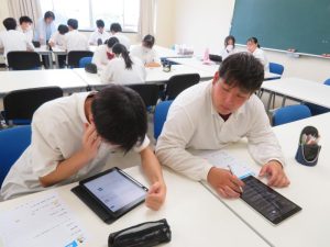 3年生の就職・進学試験に向けて、面接対策を行いました。動画を視聴し、出入りの仕方や座り方について学ぶことができました。