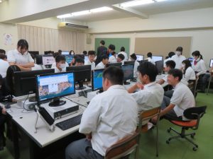2年生は、高瀬町にある株式会社光工作所を見学させていただきました。電力系の設備や配電盤などの設計・製作をされている会社で、機械化された溶接作業の様子を見せていただいたり、本校のOBから仕事内容などを説明してもらいました。