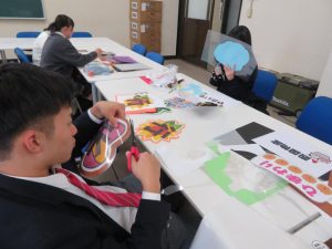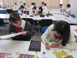 2学期初めの授業は、10月に開催される瀬戸内国際芸術祭2025のボランティア活動の一環として、来場者に向けたささやかなプレゼントを送るべく、しおりの作成を行いました。
