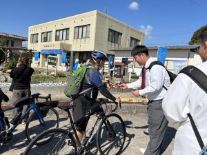 来場者へのおもてなしとして、しおりやウエルカムボードを作成し、元気よく挨拶をしました。砂浜清掃ボランティアでは、1時間程度と短い時間でしたが、プラスチックやペットボトルのゴミであっという間に袋がいっぱいになりました。改めてゴミの多さに驚きました。