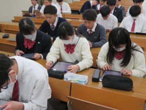 先週実施したうどん作り体験の振り返りと、校内の中庭リニューアル案を考えてもらいました。iPadを使用しながら画像を検索したりして、思い思いにイメージを膨らませていたようです。