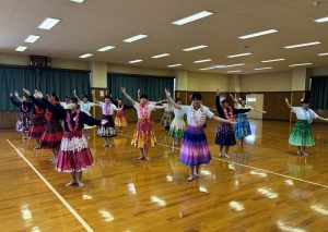 後半は、アップテンポの曲に合わせてリーダーさんが奮闘し、中力粉に塩水を入れて「混ぜる・こねる・足踏み・熟成」の行程を体験しました。
