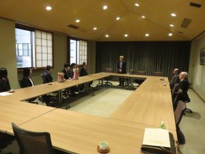 11月25日(火)16時より四国学院大学に対し表敬訪問を行いました。今回の訪問は全国高等学校駅伝競走大会(香川県予選会)、並びに全日本高等学校女子サッカー選手権大会(香川県大会)において見事に優勝し県代表チームとして全国大会への出場が決定した、男・女駅伝部監督、選手、女子サッカー部監督、選手が、大学関係者への優勝報告を行いました。男子駅伝は21年ぶり2回目(校名変更後初)、女子駅伝は2年ぶり6回目の出場です。男女揃っての出場は初となります。男子駅伝の外山選手、女子駅伝の豊田選手からは、全国の大舞台でのチーム記録の更新を目指すとともに、30位台を目標に1つでも上の順位を目指したいとの決意表明がありました。女子サッカーは2年連続9回目の出場となります。西尾選手からは、まずは1回戦を突破しベスト8進出を目指したいとの決意表明がありました。末吉学長からは、駅伝、女子サッカーとも日頃の練習の成果を十二分に発揮して目標を達成できるよう頑張ってくださいと激励の言葉をいただきました。