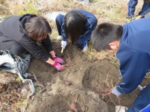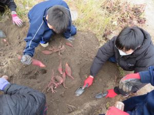 2学期最後の未来行動学Ⅱは、初夏に植えたサツマイモの収穫と、クリスマスパーティーを行いました。